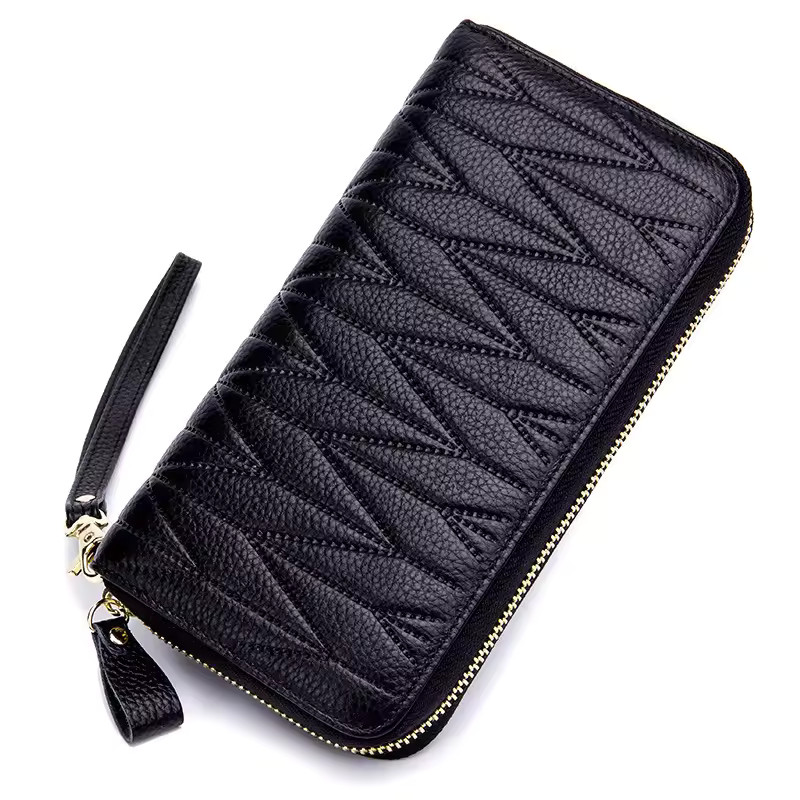 Portefeuille long en cuir véritable gravé – L’élégance fonctionnelle au féminin